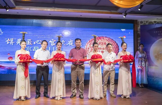 在月饼品鉴环节,由海南水晶宫首席制饼师傅陈观上带领的6位师傅为来宾们切割月饼,现场经销商在品尝过后纷纷点赞,并表示今年中秋的月饼就选水晶宫月饼。