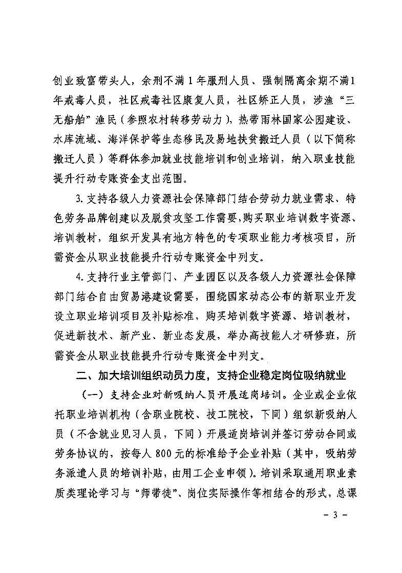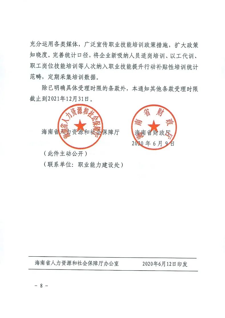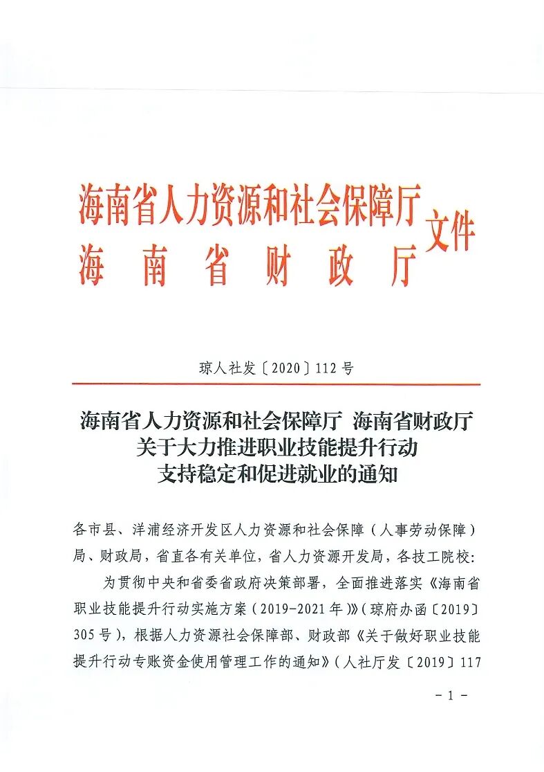 海南省人力资源和社会保障厅、海南省财政厅关于大力推进职业技能提升行动支持稳定和促进就业的通知