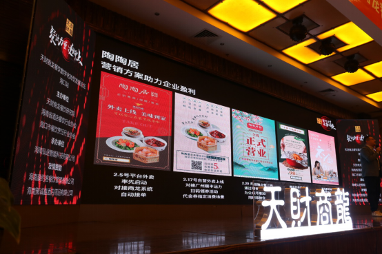他通过天财商龙客户、广东知名餐企——陶陶居的案例,讲述了陶陶居如何通过数字化营销,仅2个月就恢复了70%的营业额,在疫情恢复期自救成功。