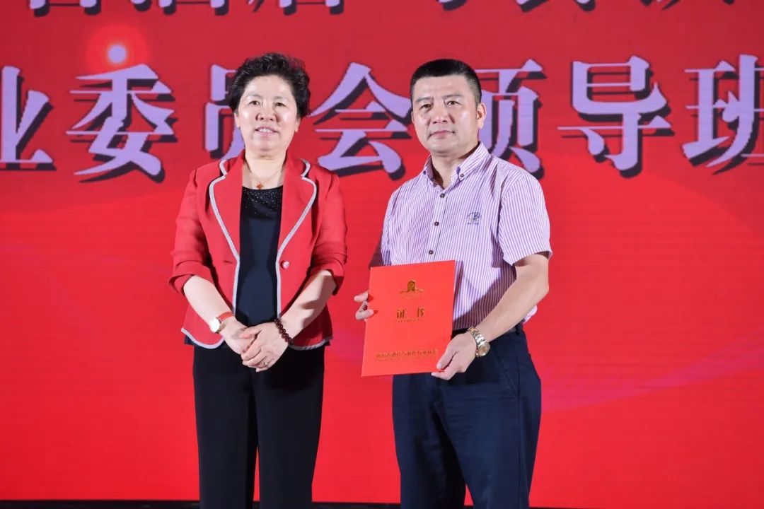 韩明会长给当选的名厨委主席曾令漢同志颁证