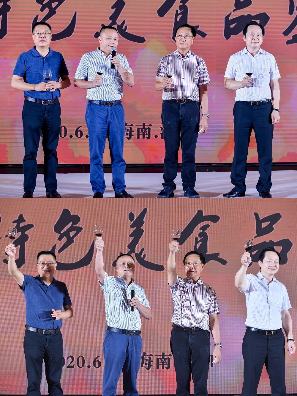 省酒餐协符史钦会长、陈恒执行会长、黄俊忠理事长、李朝清监事长在海南特色美食品鉴会上祝酒