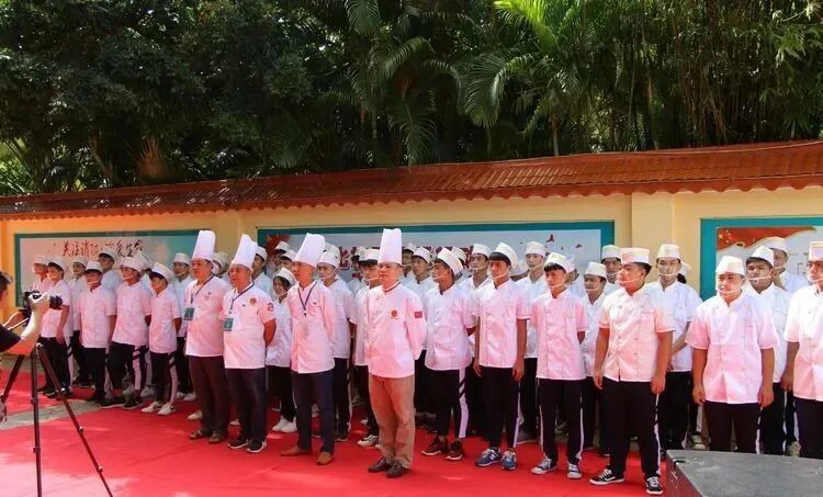 参加此次揭牌仪式的人员有:教育局孙人策副局长、海南省酒店与餐饮行业协会副会长兼秘书长陈刚、邢涛大师及李学深、张光平等烹饪大师、文昌市中等职业技术学校林勇校长、林方立副校长、符铭副校长、符祥峰副校长、钟尹副主任、潘军老师、烹饪专业全体教师和烹饪专业部分学生。