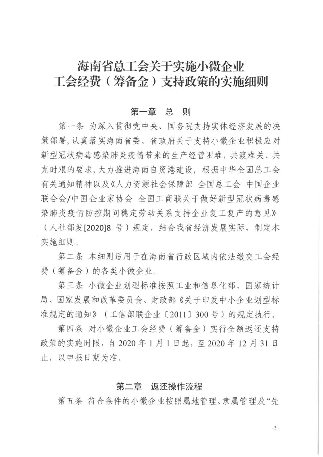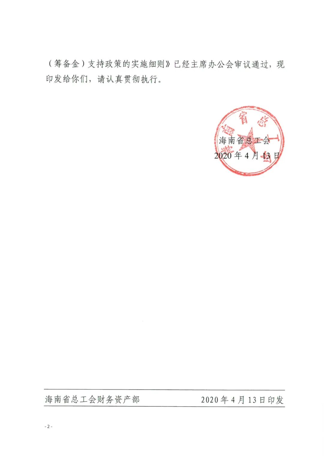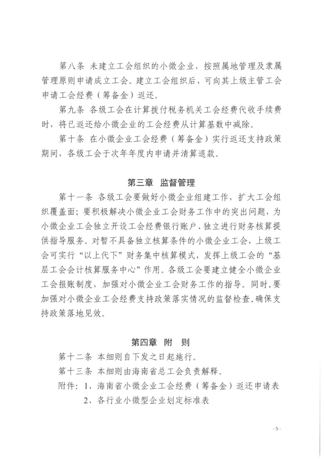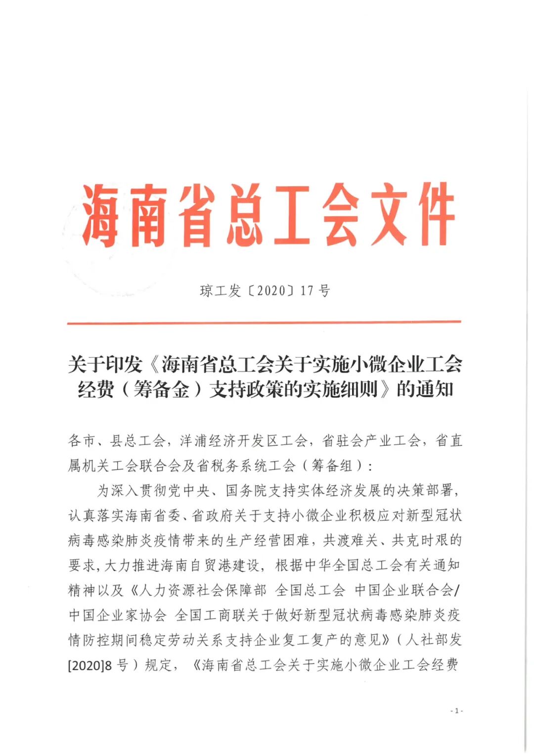 关于印发《海南省总工会关于实施小微企业工会经费(筹备金)支持政策的实施细则》的通知