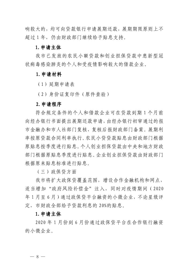 (八)“助保金”代偿率如达到50%,助保贷业务将暂时中止,合作机构停止发放贷款。待追偿程序弥补一定损失后,视情况重新启动助保贷业务,“助保金”管理机构将追加资金,补足“助保金”。
