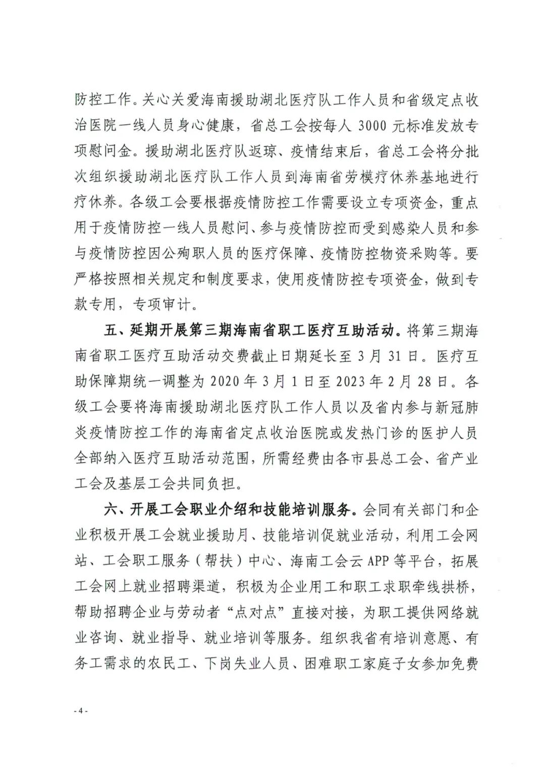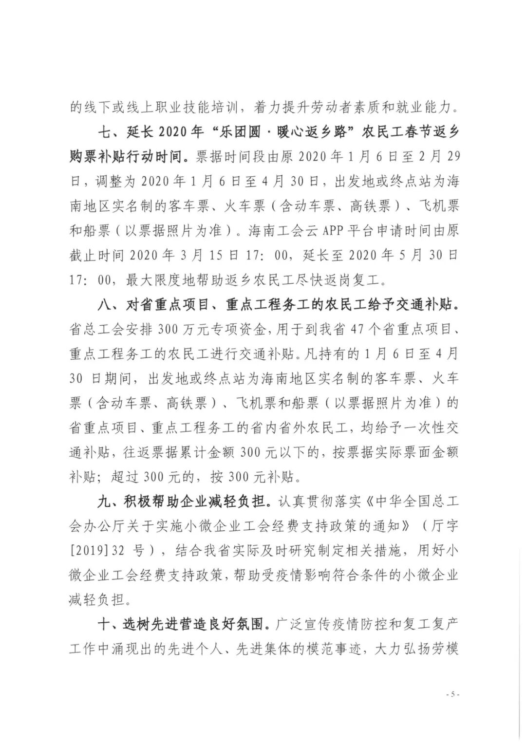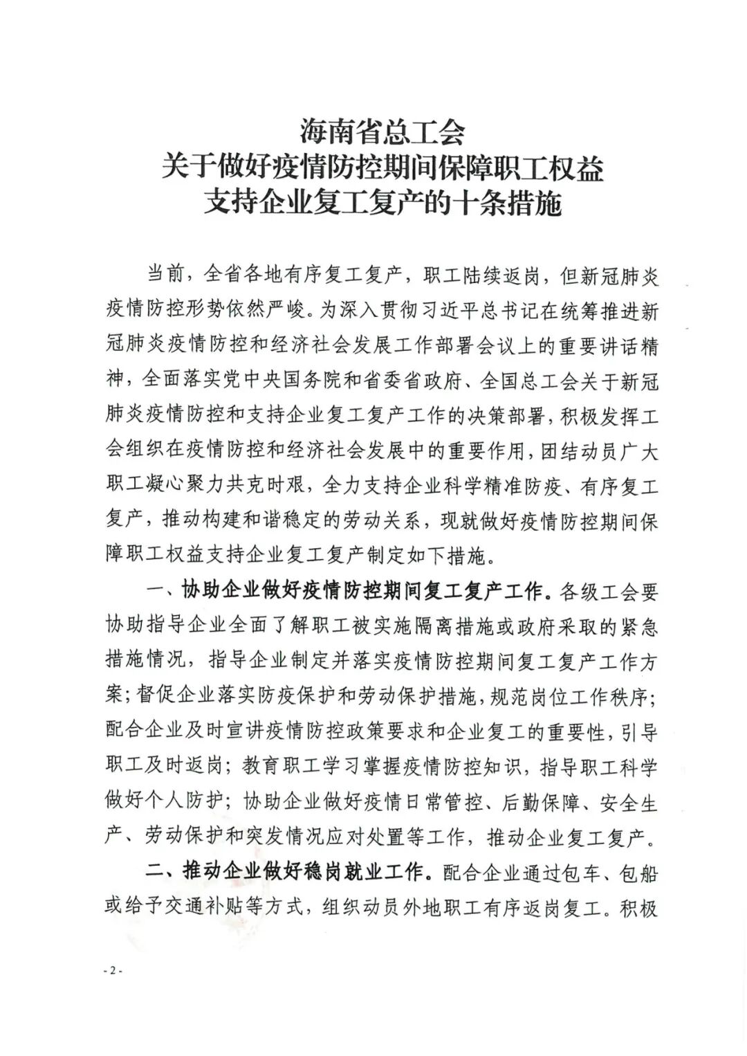 海南省总工会关于做好疫情防控期间保障职工权益支持企业复工复产的十条措施