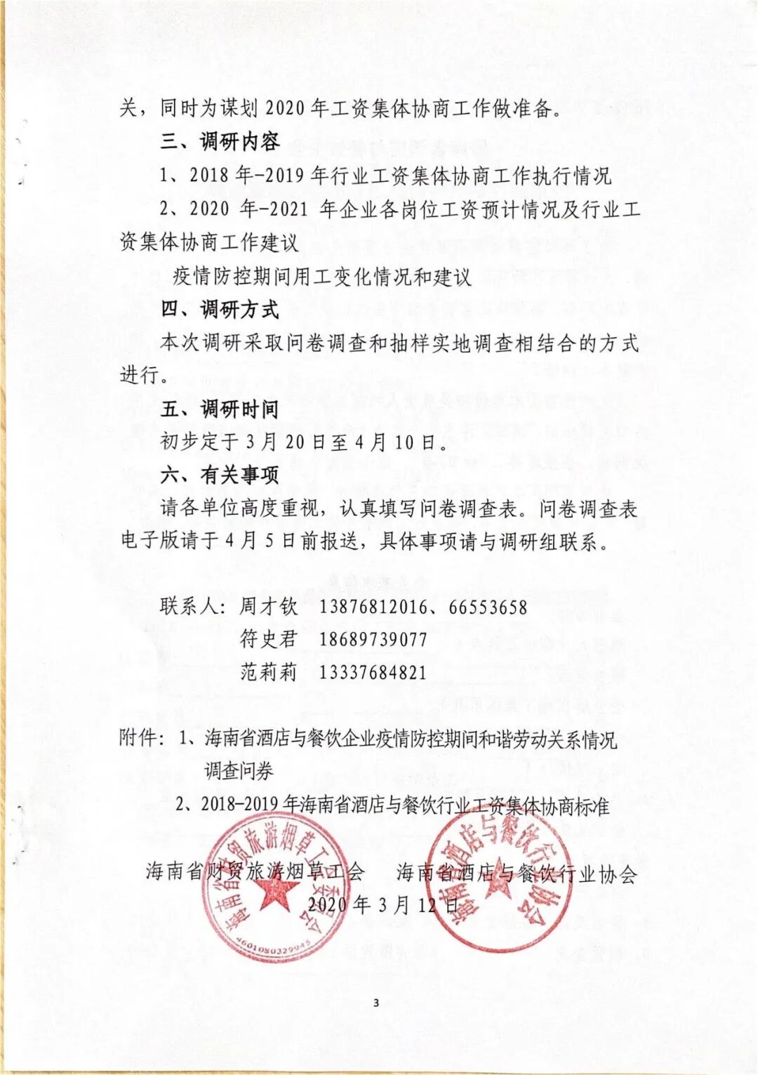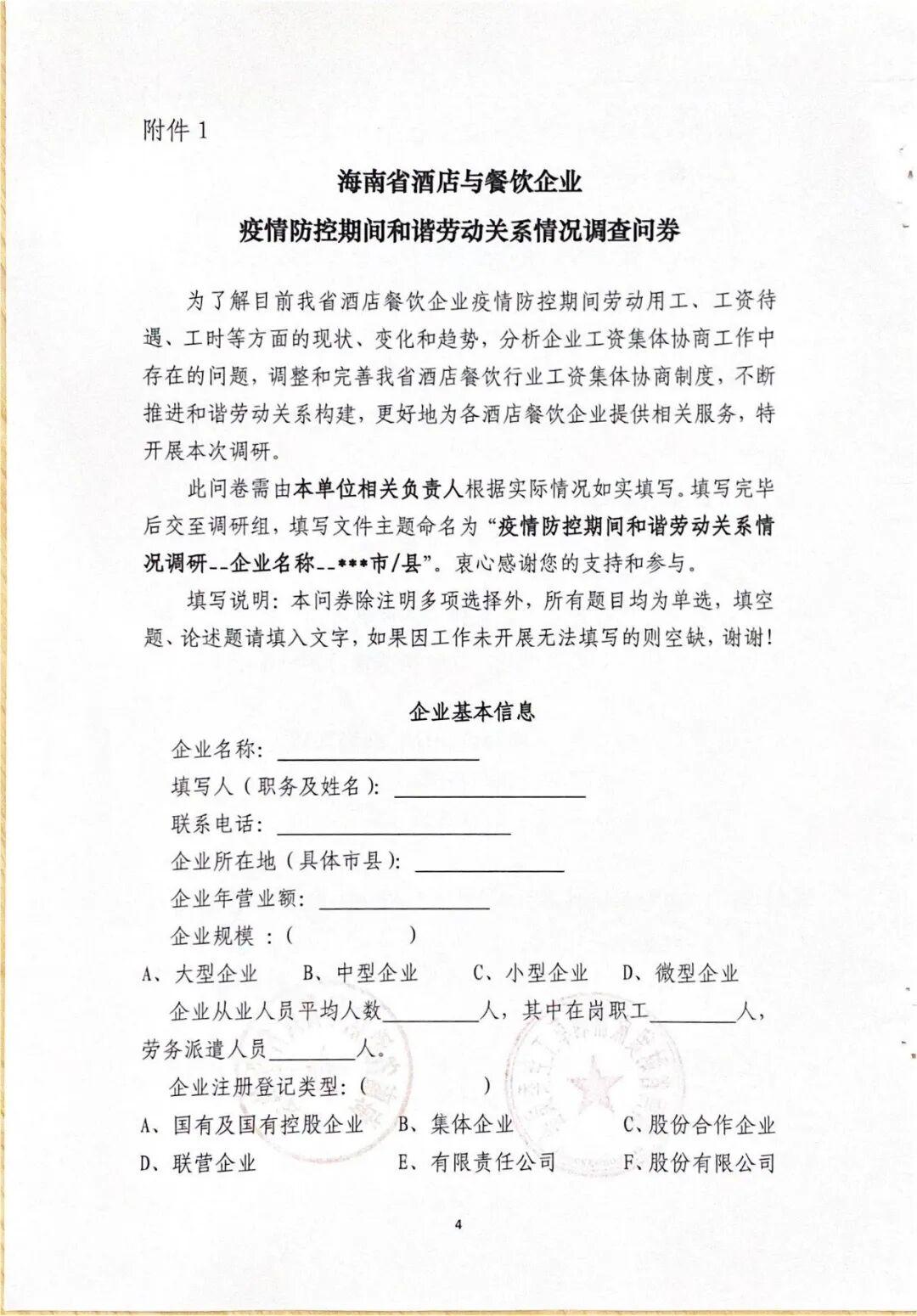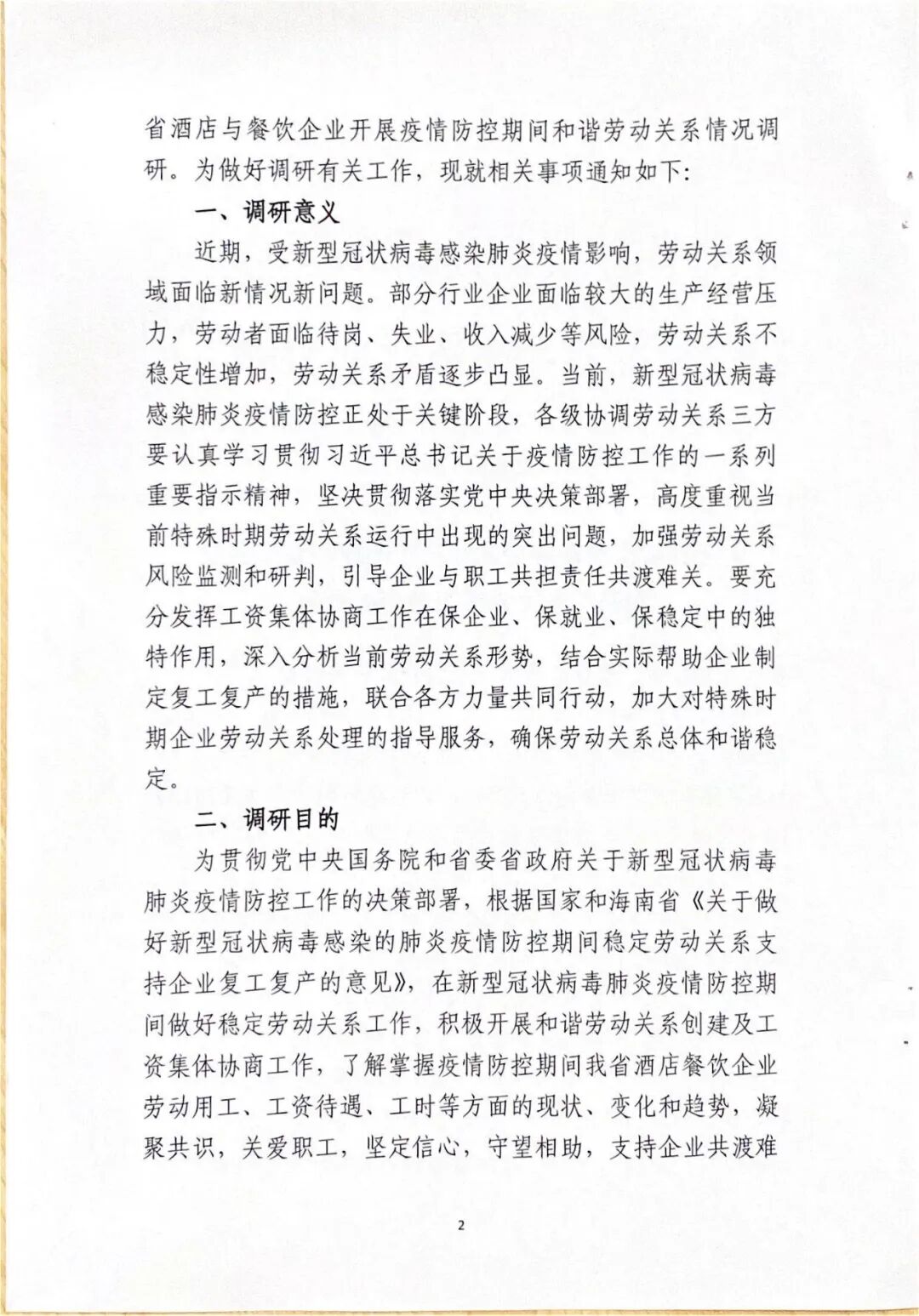 关于开展疫情防控期间海南省酒店与餐饮企业和谐劳动关系情况调研的通知