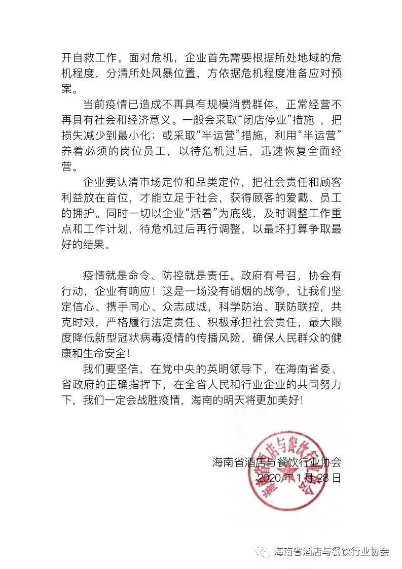 [温馨提示] 文章来源于海南酒店餐饮行业协会公众号,转载注明原文出处,此文观点与查生意无关,理性阅读,版权属于原作者若无意侵犯媒体或个人知识产权,请联系我们,本站将在第一时间删掉 ,查生意仅提供信息存储空间服务。