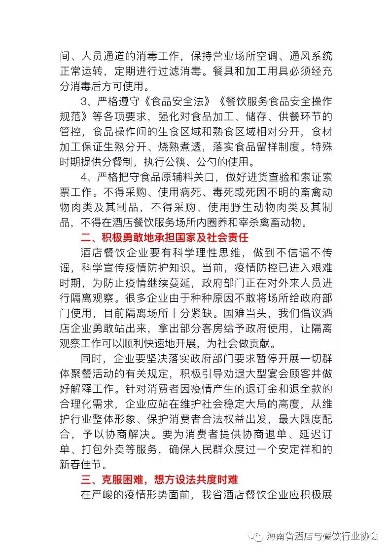 海南省酒店与餐饮行业协会关于勇担社会责任, 助力打赢疫情防控阻击战的倡议书