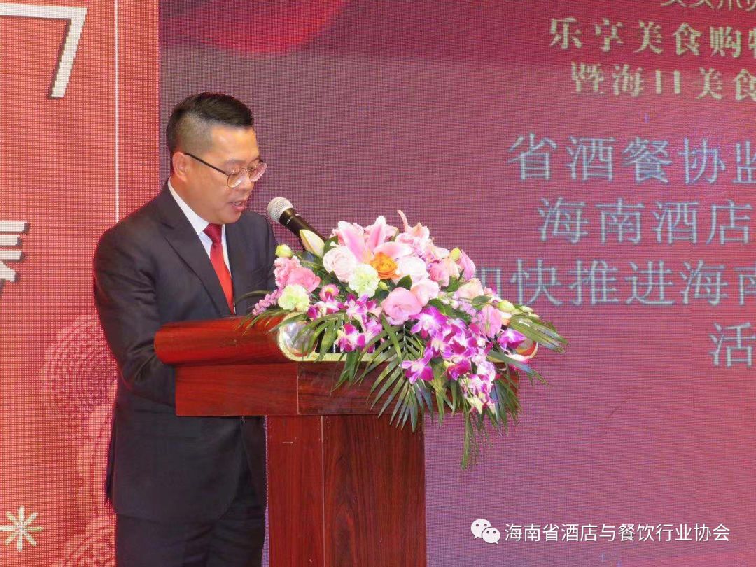 李朝清监事长宣读海南酒店与餐饮行业开展“我为加快推进海南自由贸易港建设做贡献”活动倡议书