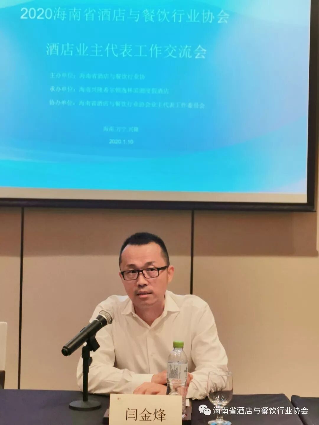 陈恒执行会长作会议总结,他首先向海南兴隆希尔顿逸林滨湖度假酒店及闫金烽业主代表对此次会议鼎力支持表示感谢。同时代表协会感谢在座与会代表在百忙之中能够参加此次会议,其次简要介绍协会2020年工作计划及对酒店业主代表工作委员会今后工作的想法。陈会长指出,如今酒店板块在协会占着越来越大的比重,包含国际品牌酒店、高端品牌酒店、民族品牌等。全国绿色饭店及会议型酒店的评定,也拉近了与酒店之间的距离,协会与各酒店的联系越来越紧密。协会已成立17个年头,特别是近年来协会每年组织的行业活动及政府支持的项目比较多,协会影响力和凝聚力也越来越大,但协会所做的这些工作与企业的需求、政府的期望以及协会自身的工作要求还是有较大距离,在新的一年也想听取企业对协会的工作计划提出宝贵意见及建议。会上,陈会长表示业主代表与酒店管理方是鱼水关系。既要履行监管的责任又要相互协作、相互支持、相互尊重,实现双赢。针对酒店业主代表工作委员会的工作提出三点建议:一、组建好队伍,二、制定好计划三、开展好服务,切实发挥专委会的作用,更好地服务行业发展。