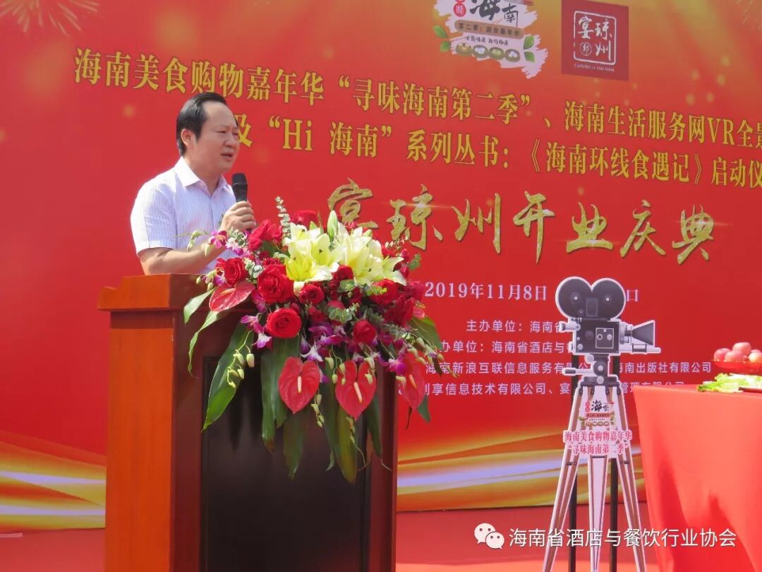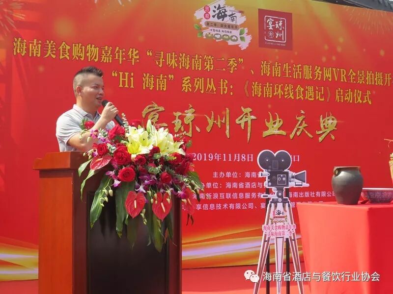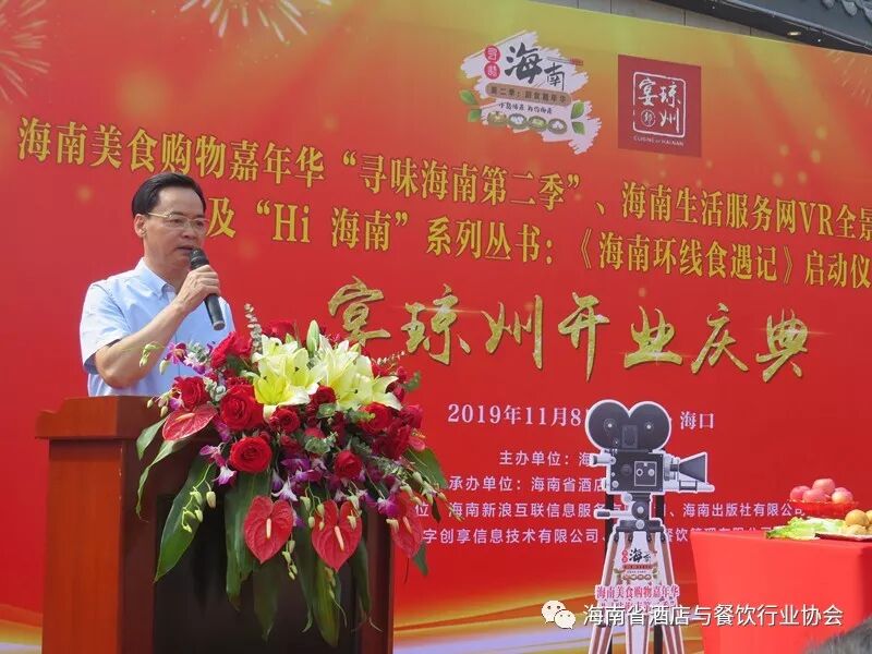 嘉宾剪彩结束后,由宴琼州掌门人兼CEO郑国勇致欢迎并介绍宴琼州的创办理念,接着省酒餐协行会长陈恒和省潮商经济促进会蔡松城执行会长致贺词。