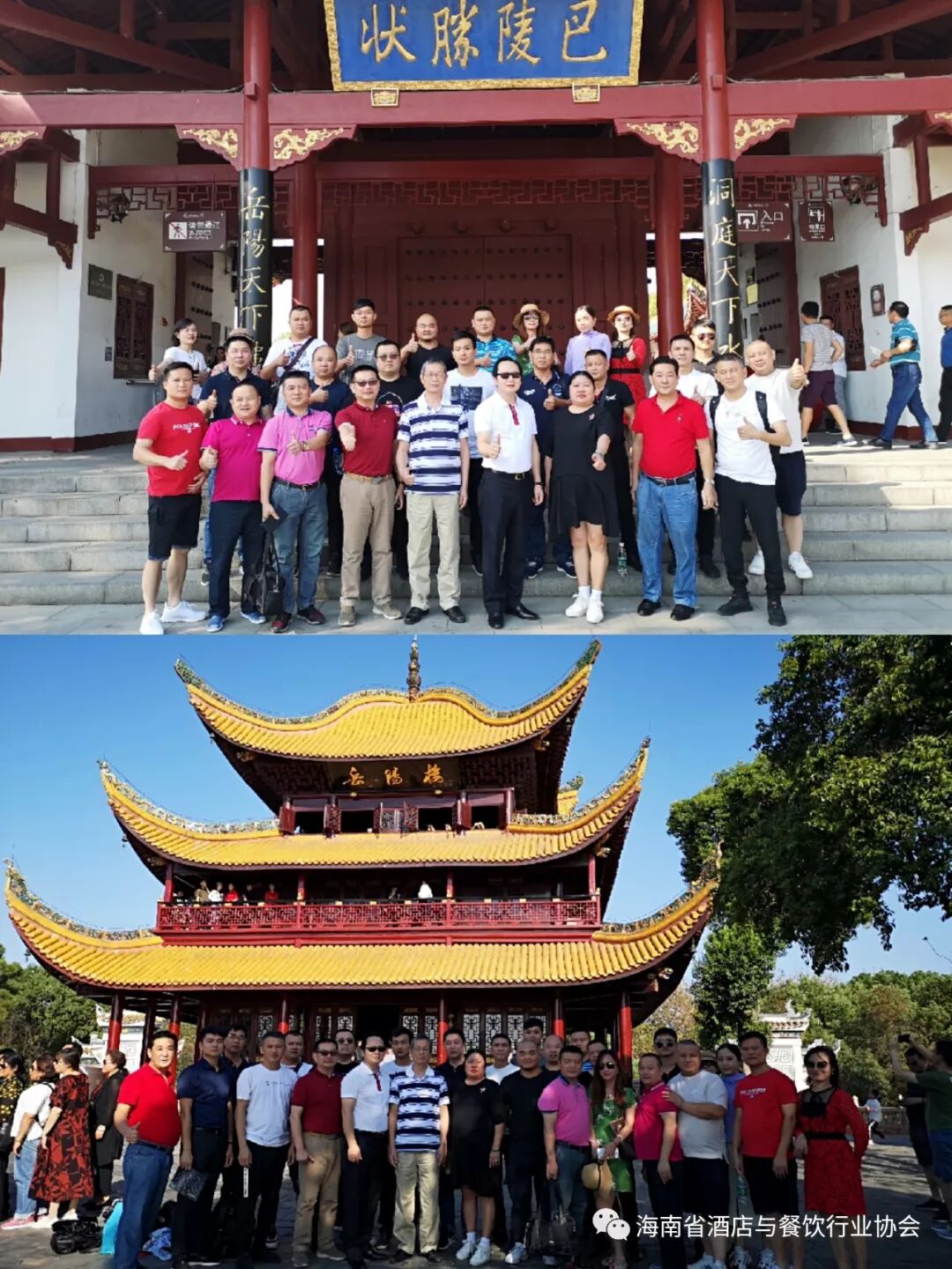 海南省餐饮业赴湖南考察团一行在下午参观有着"洞庭天下水、岳阳天下楼"之美誉的江南三大名楼之一的--岳阳楼,感怀范仲淹先生的"先天下之忧而忧,后天下之乐而乐"的家国情怀!