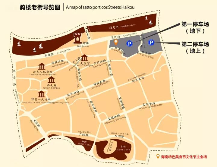 自驾路线:导航至“水巷口骑楼老街海南美食广场”