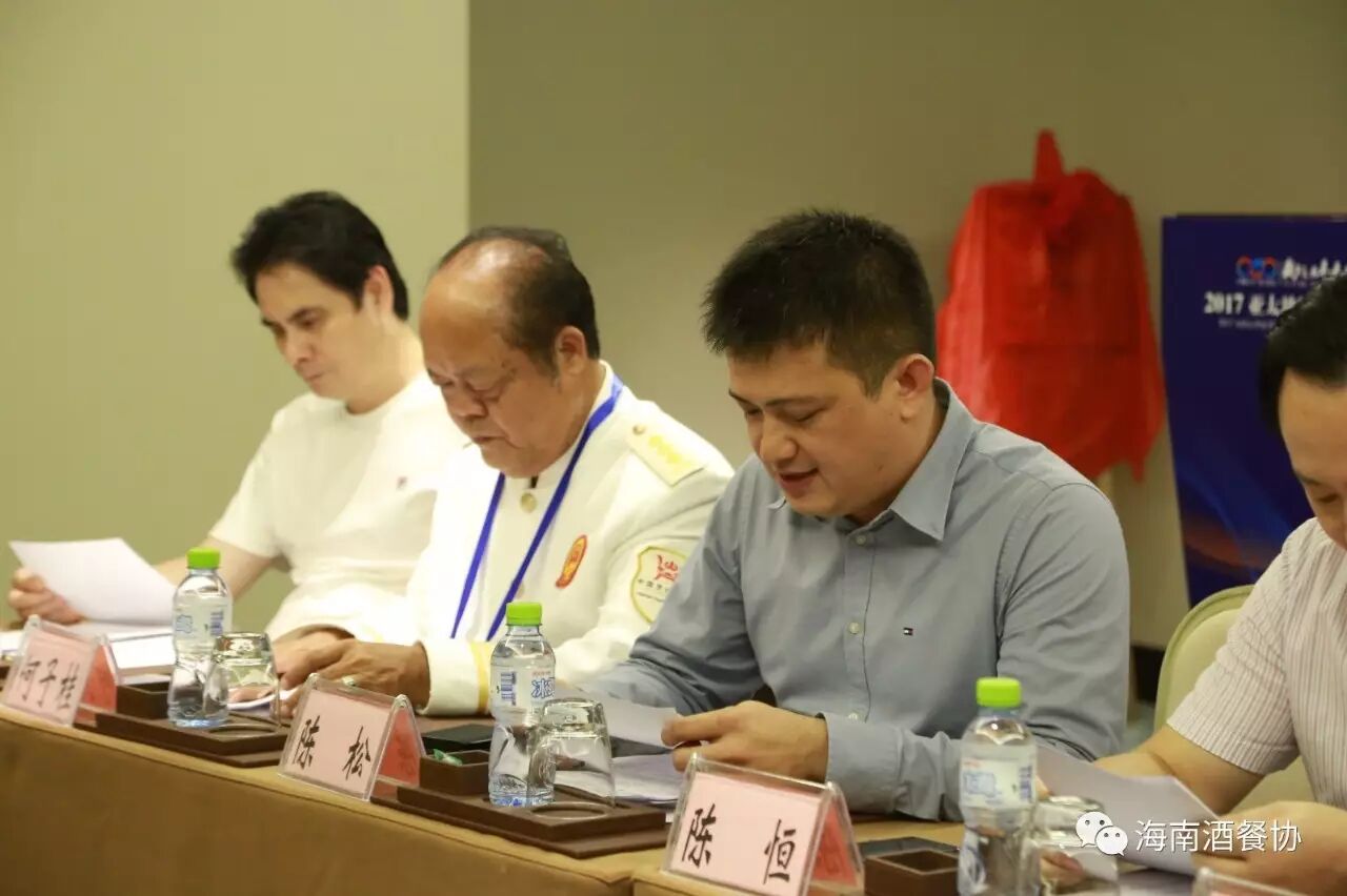 代表大会由省酒餐协执行会长陈恒主持,会议上省酒餐协主席团主席、海南海航迎宾馆董事长陈松作宣读了关于同意筹备成立的批复文件,省酒餐协副会长兼秘书长陈刚汇报了筹备情况,表决了《行政总厨(厨师长)工作委员会工作条例》,选举产生了省酒餐协行政总厨(厨师长)工作委员会领导班子,海南省烹饪协会顾问唐人志、海南省烹饪协会顾问陈中琳、琼海昌隆饭店顾问何子桂、海南皇马假日酒店集团技术顾问庄裕伦、海口新国宾馆行政总厨吴日辉、三亚喜来登度假酒店中餐行政总厨李学深、三亚天域度假酒店副总经理陈国清、海口黄金海景大酒店行政总厨史李生、海口市“双创”工作指挥部餐饮出品总监颜礼深受聘为名誉主任,海南省酒餐协主席团主席、海南省海航迎宾馆董事长陈松当选主任,海口天佑大酒店行政总厨张光平、三亚亚龙湾迎宾馆行政总厨邢涛、三亚国光豪生度假酒店餐饮运营总监丁来科、海口海航希尔顿行政总厨郑国勇当选执行主任,海南鑫源温泉大酒店行政总厨吴盛群当选秘书长,海南省技师学院食品工程系统主任陈善渊、三亚琼州风味园销售总监郑祖全、海南省酒店与餐饮行业协会餐饮工作部副部长林光海当选副秘书长。