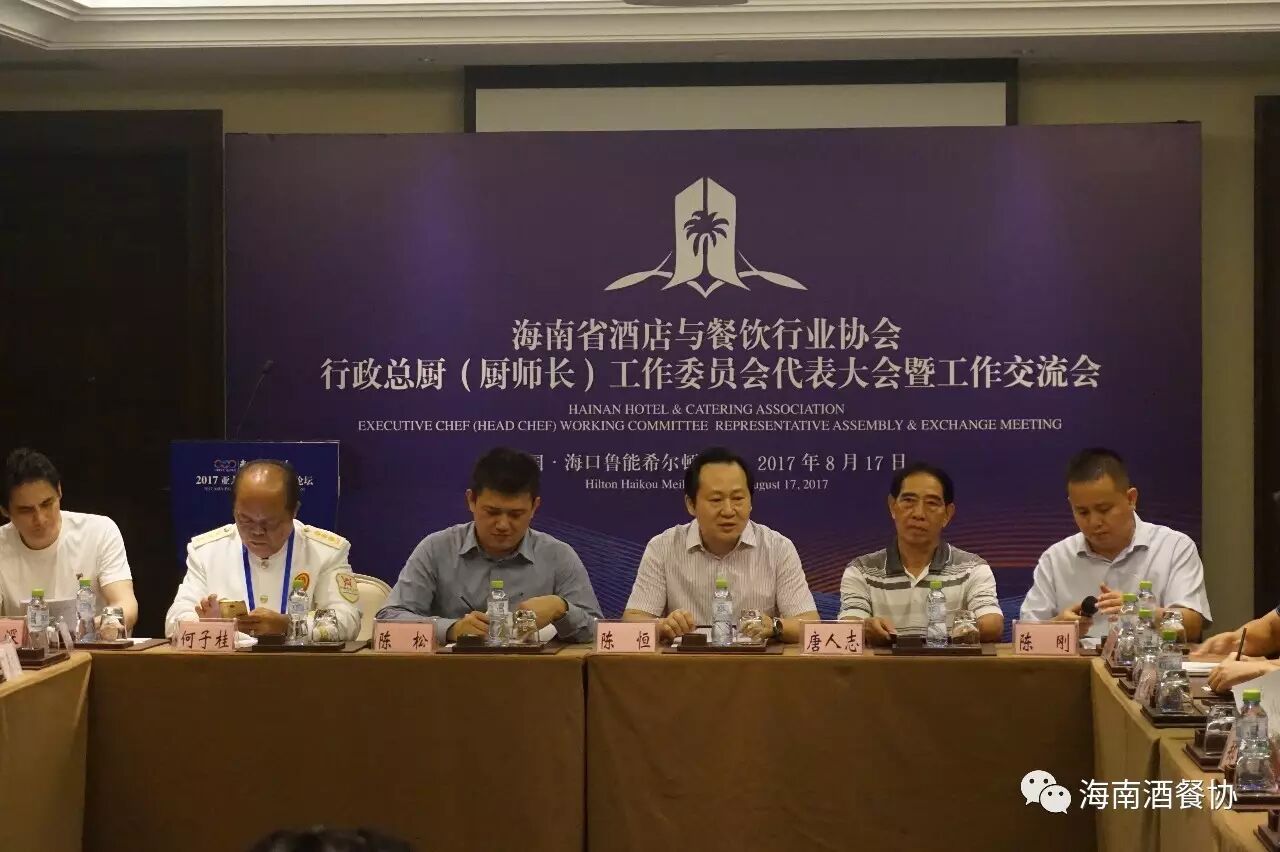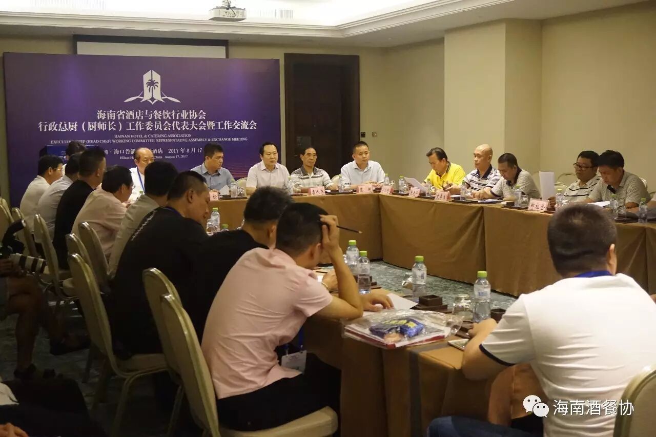为进一步开拓协会工作领域,提高专业性服务水平,增强服务功能,搭建我省酒店餐饮业行政总厨(厨师长)相互交流合作平台,进一步提升厨德和厨艺及提高厨政管理,促进行业健康持续发展。2017年8月17日下午,“海南省酒店与餐饮行业协会行政总厨(厨师长)工作委员会代表大会暨工作交流会”在海口鲁能希尔顿酒店召开。海南皇马假日酒店集团、海口君华海逸酒店、三亚银泰阳光度假酒店、海口龙泉花园酒店、海南观澜湖酒店、海口欢乐海岸美食联盟、海南拾味馆餐饮连锁管理有限公司、海口麦点九毛九餐饮有限公司、海岛八号餐饮管理有限公司、华诚汇酒家、海岛雨林海鲜坊、文昌琼菜人家等100余家重点酒店餐饮企业行政总厨(厨师长)应邀出席会议。