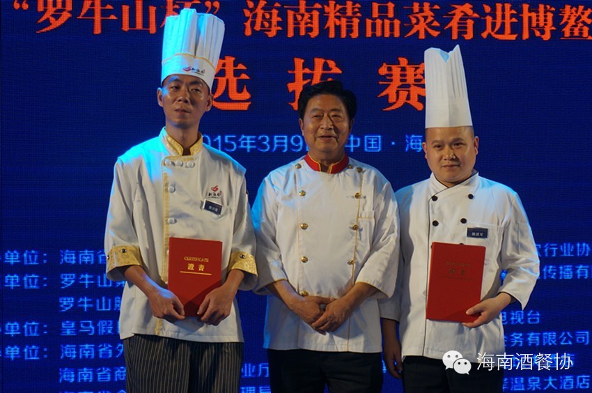 既要色香味俱全,又要精美有故事。在选拔活动的赛场,气氛紧张激烈,而选手角逐则是精彩十分。最终,来自皇马假日酒店的成金胜、蔡兴宗,三厨新海府的黄川健,海南拾味馆的杨建军,世纪豪庭酒店的王赞雄,长滩雨林海景的许声龙,海口宝发幸福酒店的杨许凰,三亚鼎泰祥餐饮的陈亚文,海南省经济技术学校烹饪工艺教师罗敏,海口香格里拉大酒店的薛毓行,海口美兰海岛雨林海鲜坊的陈威被授予了“博鳌亚洲论坛2015年年会餐饮保障服务提名厨师”荣誉证书,这11位选手及其作品也被分别授予了“最佳创新奖”和“琼菜最精品菜肴”的荣誉称号。将被推荐加入博鳌亚洲论坛年会服务队伍,黄川健谈起来很激动。黄川健表示,能获奖对他来说将是更大的挑战。“在接下来的日子里,我将积极做好准备工作,为年会参与服务贡献力量,让更多人了解海南美食文化。”