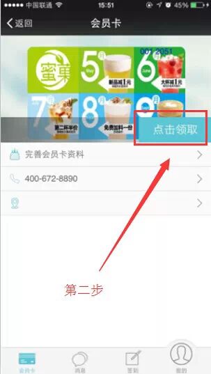 其次步:进入会员卡核心,点击“点击领取”字样