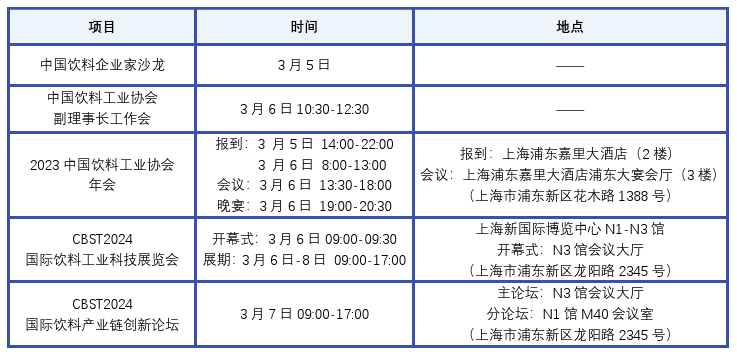 3月6日~8 日,上海,2023 中国饮料工业协会年会及 CBST2024 国际...