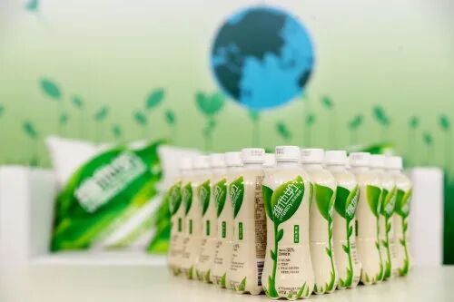 最后介绍一款连包装都在强调“植物”的新品——维他奶青亲地球纯味豆奶。该款产品除了在内容物突出零胆固醇、低脂肪外等消费者关注的健康方向外,更多关注环保,主打可持续发展概念,使用“植物环保瓶”,包装材料30%源自植物,具有更低的碳足迹环保优势。
