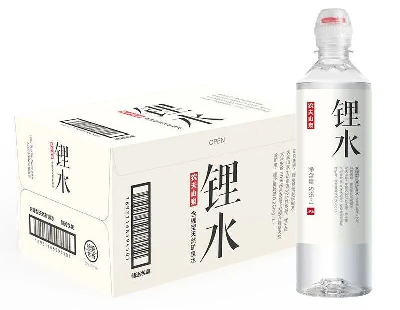 2019年农夫山泉推出了一款含锂的天然矿泉水“锂水”,农夫山泉希望能借“锂水”打健康牌、拓展中老年饮用水市场。