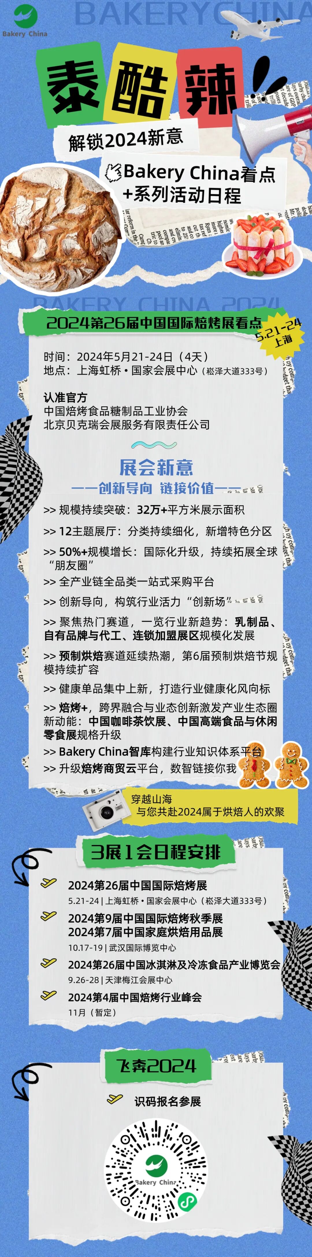 2024年5月21-24日,上海虹桥国家会展中心,让我们相约第26届中国国际焙烤展览会(Bakery China 2024)。