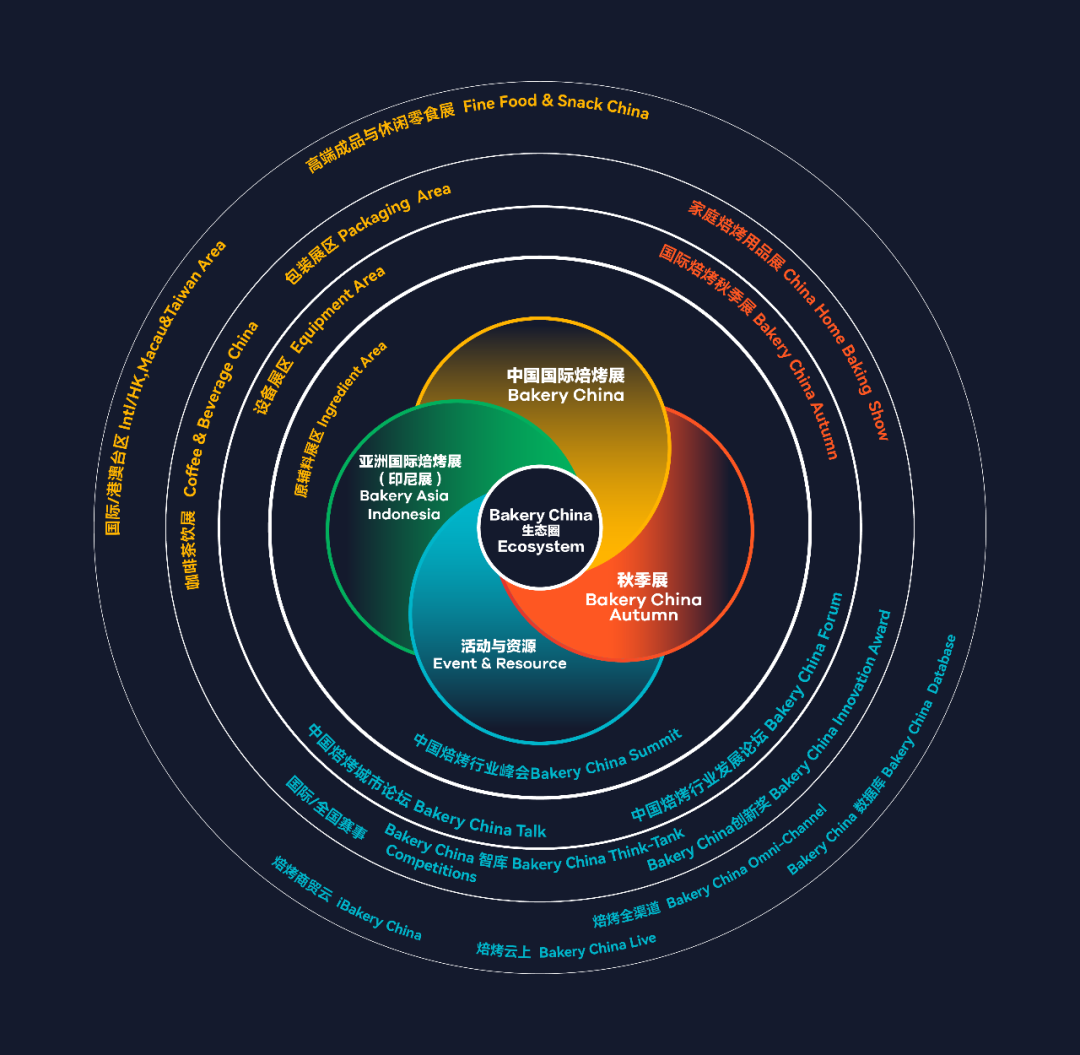 Bakery China一直在致力于搭建覆盖焙烤食品糖制品行业全产业链全品类的商贸交流平台,从最开始的原料、设备、包装、国际4大展示板块,持续不断细分产业链分门别类,突出各区域展示重点和展示特色,集中展示行业整体现状与细分领域发展机遇。