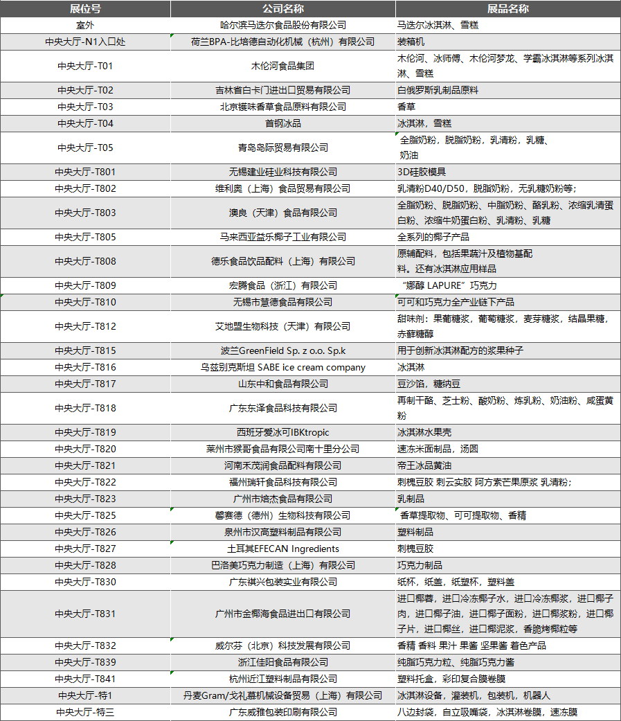 中国冰淇淋及冷冻食品产业博览会展位分布图和展商目录