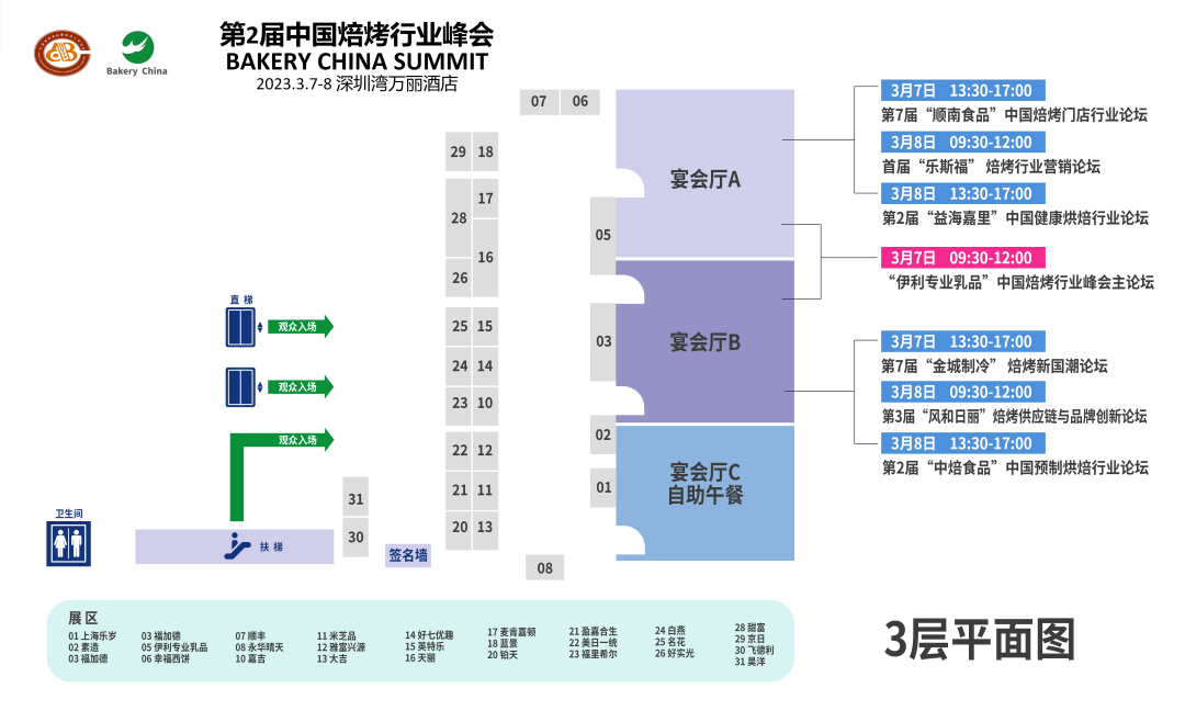 >> 凡参与本次峰会的嘉宾、听众,请您在会议论坛开始前30分钟,移步至深圳湾万丽酒店1楼【第2届中国焙烤行业峰会报到处】凭报名二维码、手机号码、姓名等签到并领取您的听会物料,如参会胸卡、会议资料等。