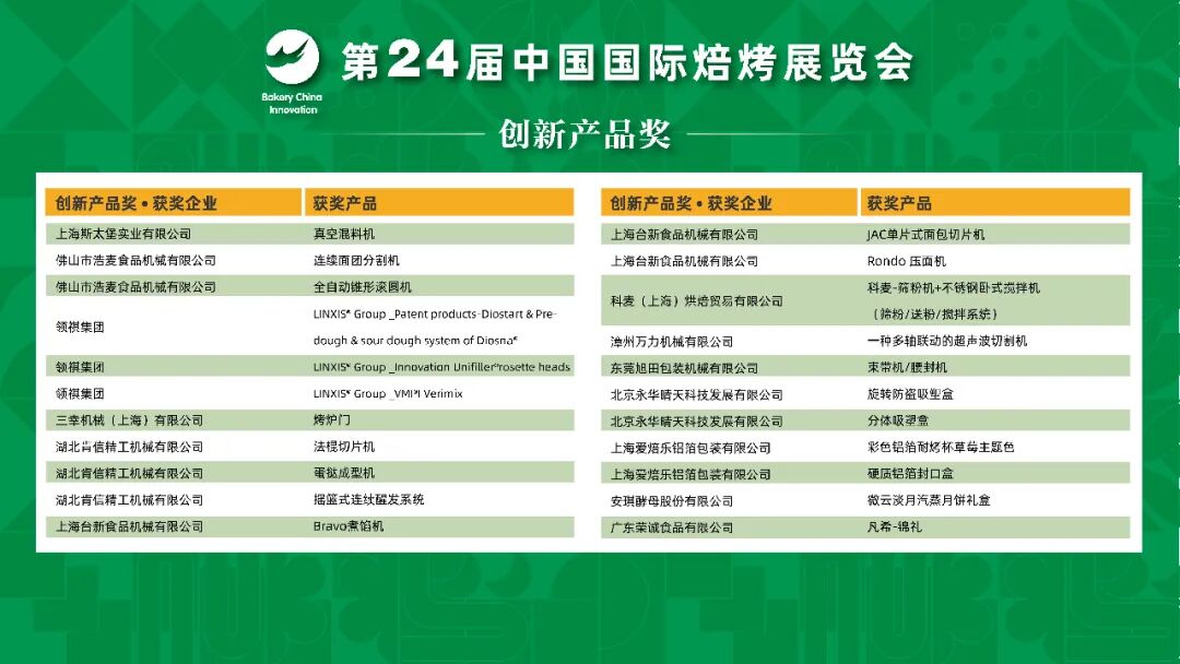 2022第24届中国国际焙烤展创新奖颁奖典礼于9月20日在上海虹桥国家会展中心北大厅举行。