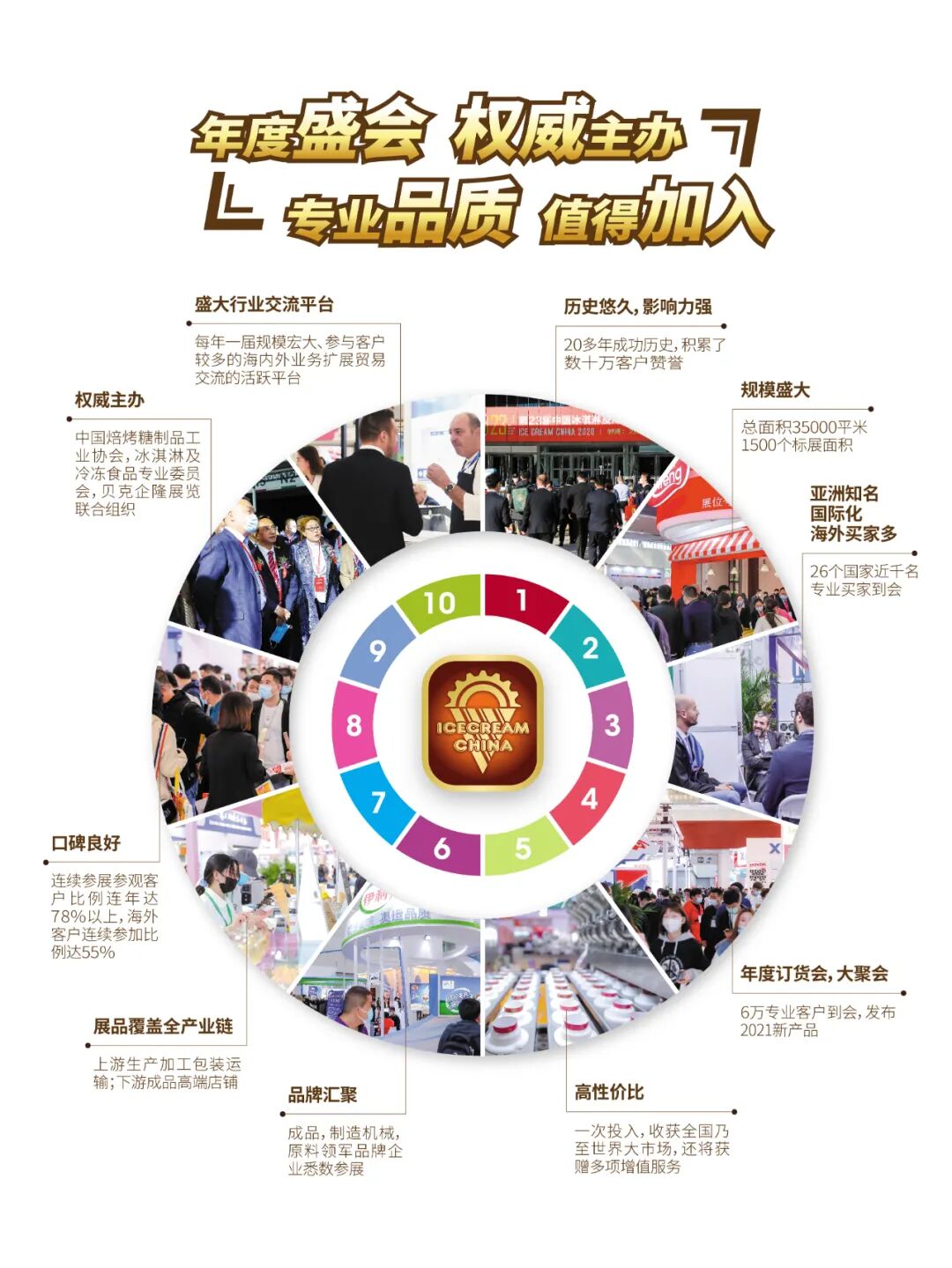 中国冰淇淋产业博览会24年来秉承专业\信誉\品质\服务的理念,在任何情况下,都站在行业发展和服务客户的角度,提供最全面最有效最周到的展会服务。期待与您2022年9月27日-29日在天津的欣喜相会!专业盛会,有你更精彩!