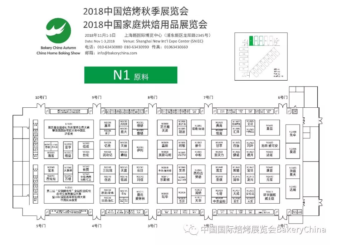 2018秋季焙烤&家庭烘焙展【官方展位图:N1展厅】