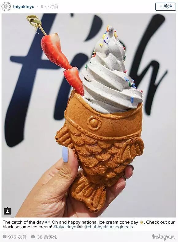 颜色清新的冰淇淋向来是Instagram上的自拍利器,最近纽约一家甜品店就推出了名为“taiyaki”的鲷鱼烧冰淇淋,将传统的蛋卷换成了日本著名小吃鲷鱼烧,配上清甜可口的冰淇淋,瞬间成为纽约潮人们趋之若鹜的自拍利器。