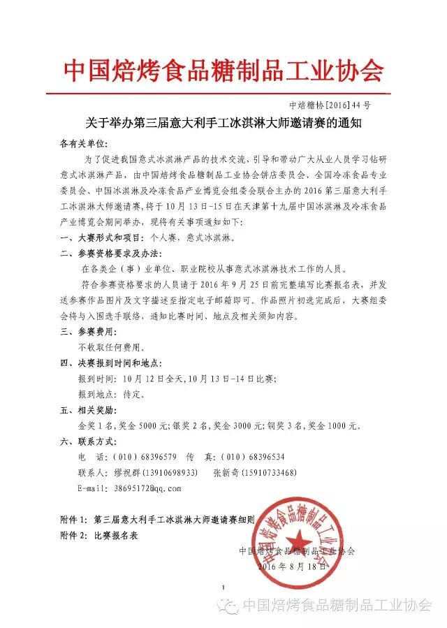 中焙糖协|2016第三届意大利冰淇淋大师邀请赛通知