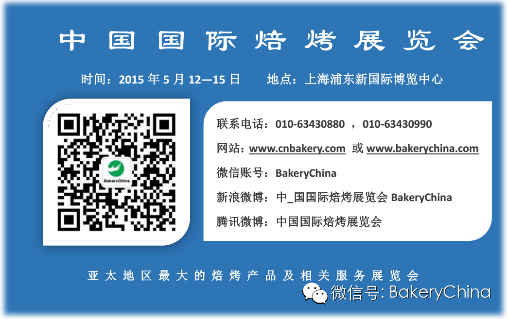 点击上方“蓝色字”可关注我们! 2015年第十八届中国国际焙烤展览会将于5...