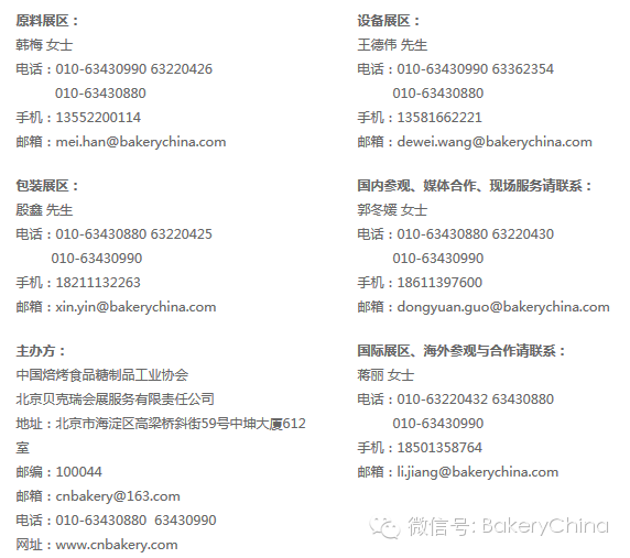 想了解更多展会动态,请关注展会官方网站www.cnbakery.com或www.bakerychina.com或关注微信订阅号“中国国际焙烤展览会BakeryChina”