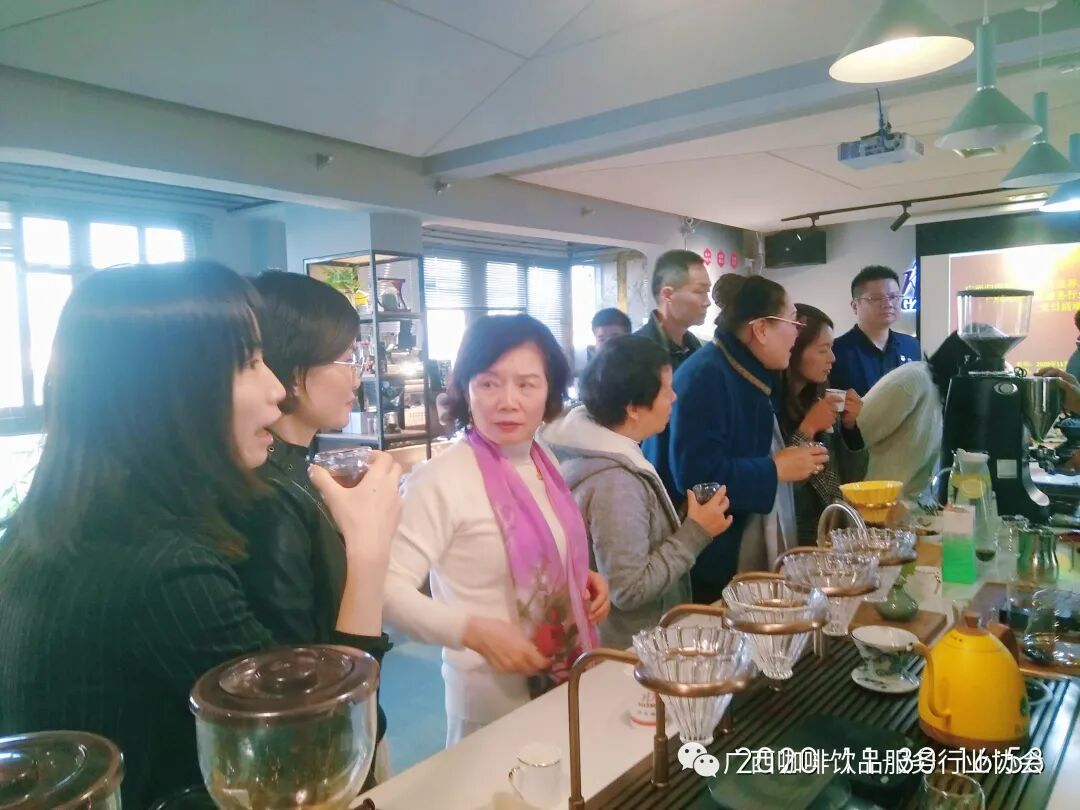 党员学习,党日活动,从一杯醇香咖啡开启了两会党支部党员学习交流,广西归国留学人员商业人士联合会海党支部常务副会长杨慧星、姚绚文书记分享了粤港澳大湾区和海南免税区相关政策,为广西咖啡饮品服务行业协会“走出去”的贸易企业建言献策。海归们也在咖啡饮品协会--咖啡研学交流站吴彬宁咖啡大师的手把手指导下体验了一把自己的第一杯手冲、拉花咖啡,久居国外的留学生活都给大家养成了喝咖啡的习惯,但没有得静下心来学习冲制咖啡,通过这次交流会终于得于心愿,寓教于乐,也增进两会党支部之间的情谊。