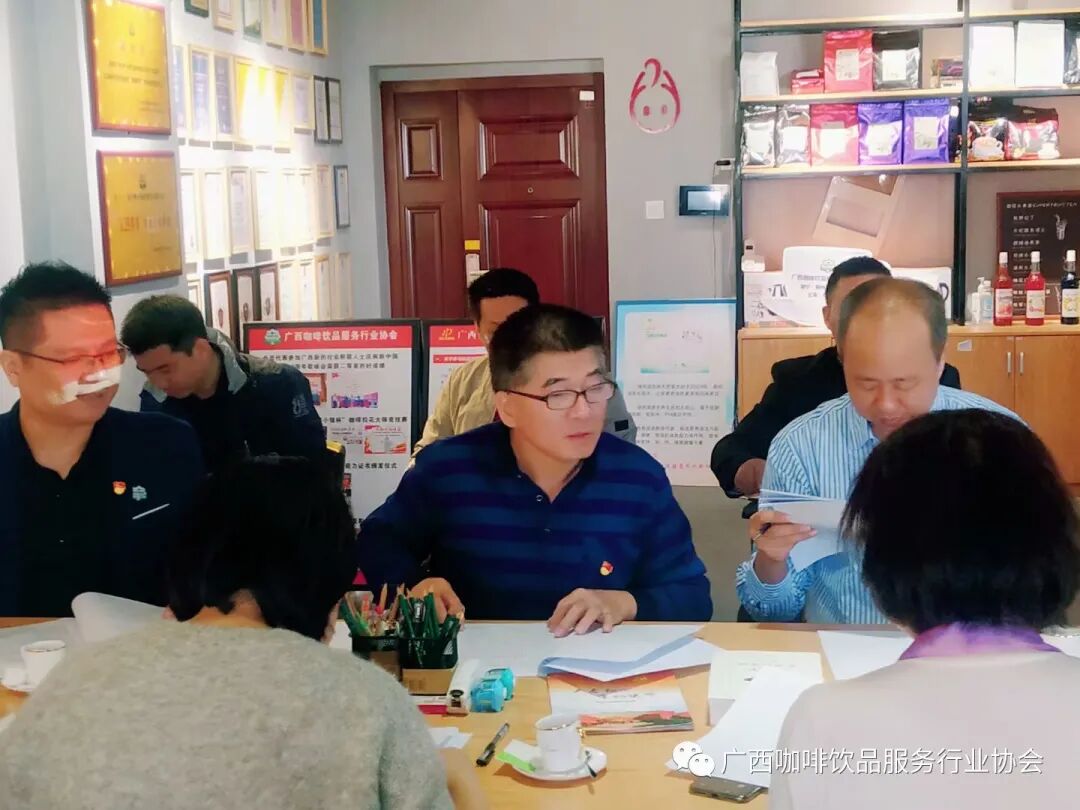 广西咖啡饮品服务行业协会参加交流会的领导及党员有刘粤东会长、玉保钢党支部书记、刘国辉副会长、党员岑荣华、欧建邕、胡武辉预备役党员等。