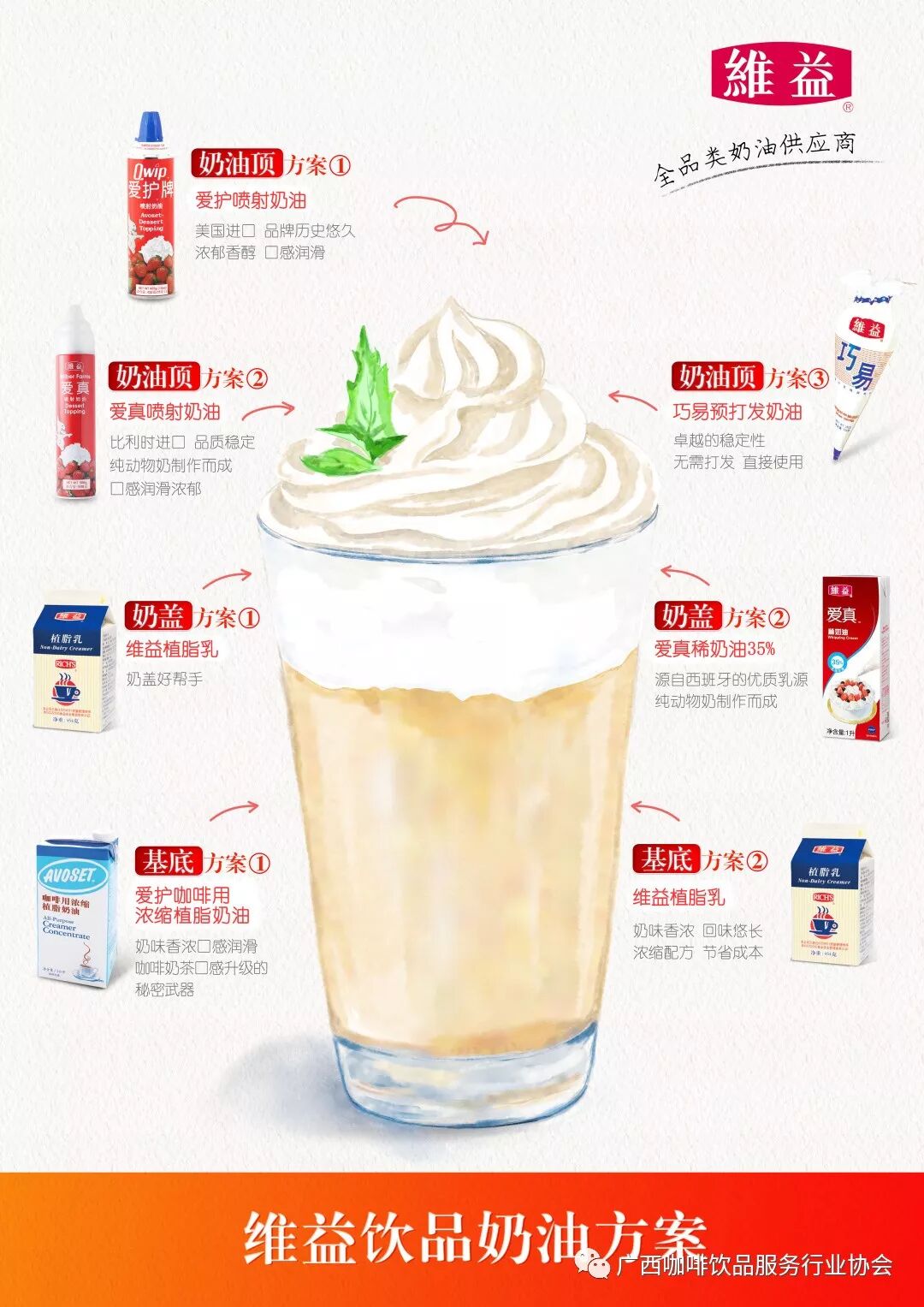 维益食品旗下分设的餐饮渠道,有多款针对餐饮行业的奶油及甜点产品,本次推荐的就是维益公司销售的一款各类饮品的绝配搭档——爱护牌咖啡用浓缩植脂奶油。
