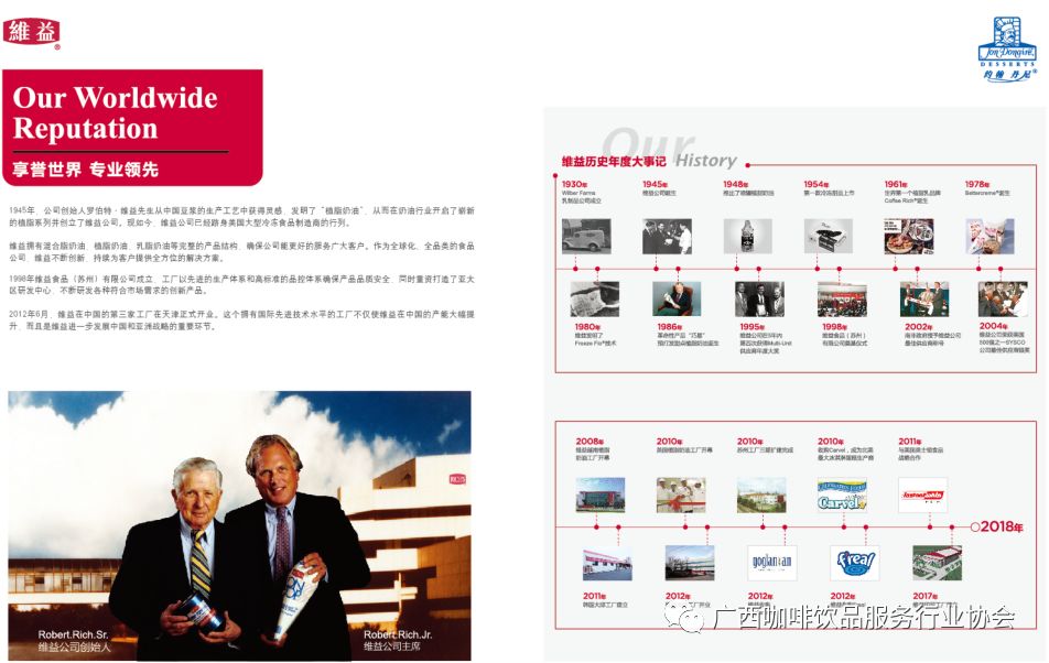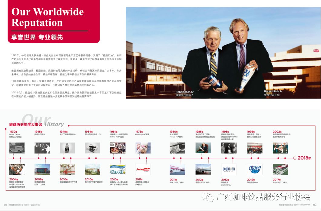 有着近百年历史的家族企业——美国维益食品有限公司,成立于1945年。公司创始人老维益先生(Robert Rich Sr)发现了一种非常有助于保持乳制品的口感和性能稳定的奶油,自此成立了维益公司来销售维益奶油产品。