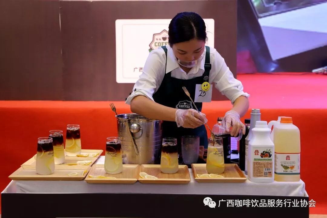 当天赛事高潮迭起,从拿铁、卡布奇诺到创意茶饮,参赛选手八仙过海,各显身手。广西本地水果在参赛选手的作品里也有精彩呈现,赛事评审团根据规则,从设备的运用、咖啡液的萃取、奶泡的打发、拉花的技巧,以及成品的口味、外观、创意度等方面,对每个作品的口感、干净度、创造力、技术和整体表现进行点评、打分。经过初赛、复赛两个环节比拼,来自南宁的咖啡选手黄燕雯凭借高超的咖啡拉花技艺水平,一路过关斩将,成为咖啡拉花大师竞技赛的冠军,饮品选手邓远盛获得创意饮品制作大赛的冠军,下面一起一一展现一下各位获奖选手的风采:
