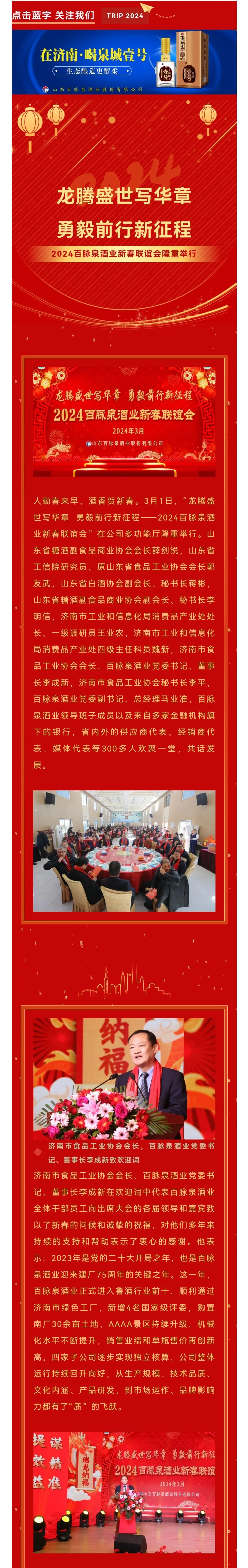 龙腾盛世写华章 勇毅前行新征程 ——2024百脉泉酒业新春联谊会隆重举行