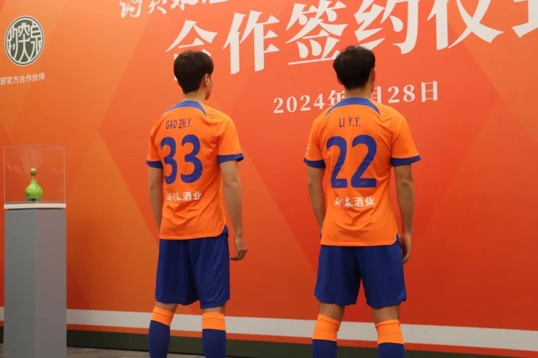 仪式上,山东泰山足球俱乐部球员高准翼、李源一身着2024赛季主场球员战袍出场,展示新赛季的全新队服。全新的球衣设计延续了山东泰山队的传统元素,同时体现了趵突泉酒业的品牌特色。山东泰山足球俱乐部董事长吴志东向趵突泉酒业董事长邢宪卿赠送新赛季球衣,标志着双方合作的正式启动。