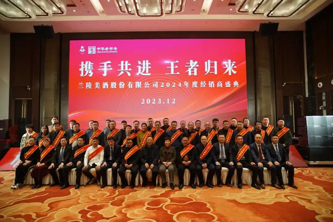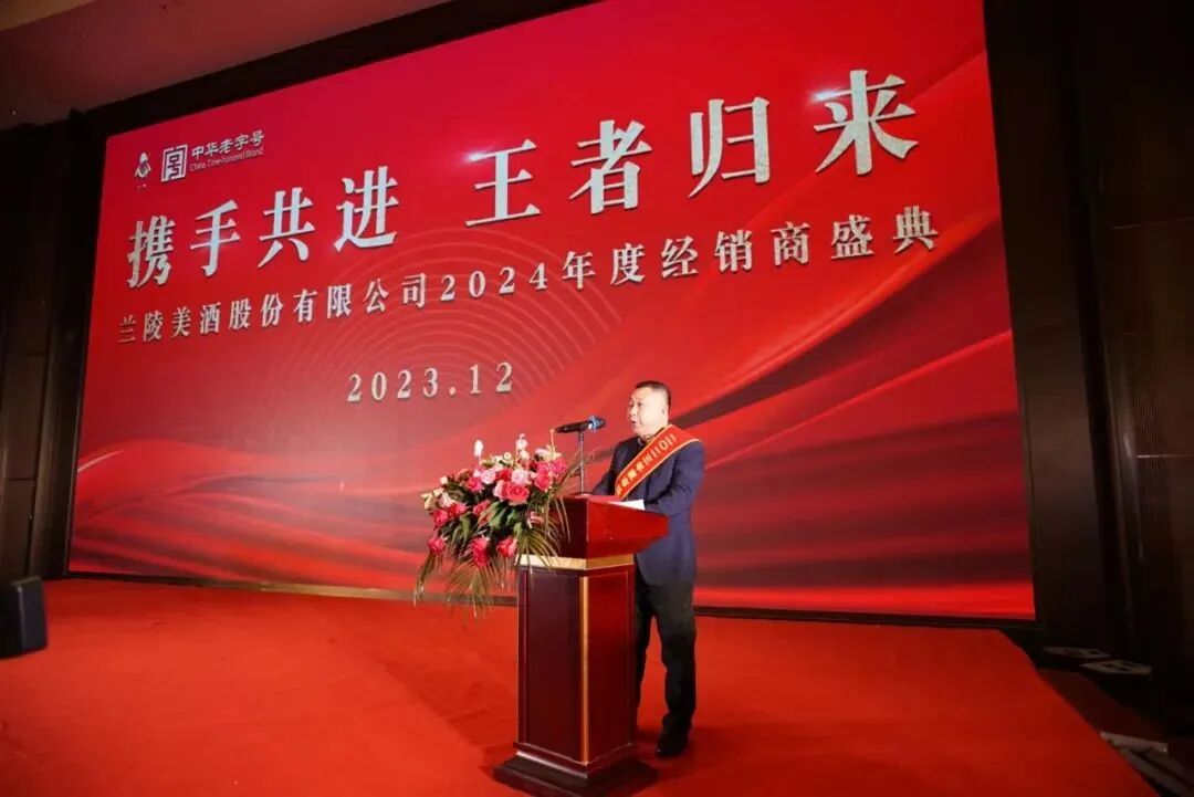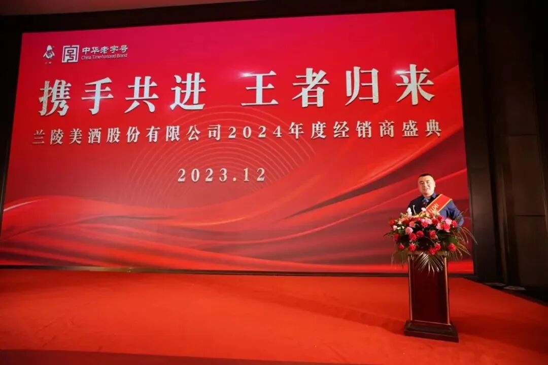 2023年12月26日至28日,山东兰陵美酒股份有限公司2024年度经销商盛典在江苏徐州隆重召开。会议以“携手共进,王者归来”为主题,公司董事长、总经理以及高层领导出席。