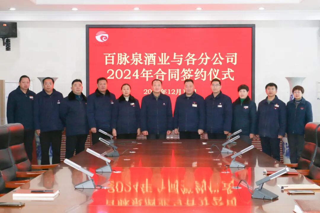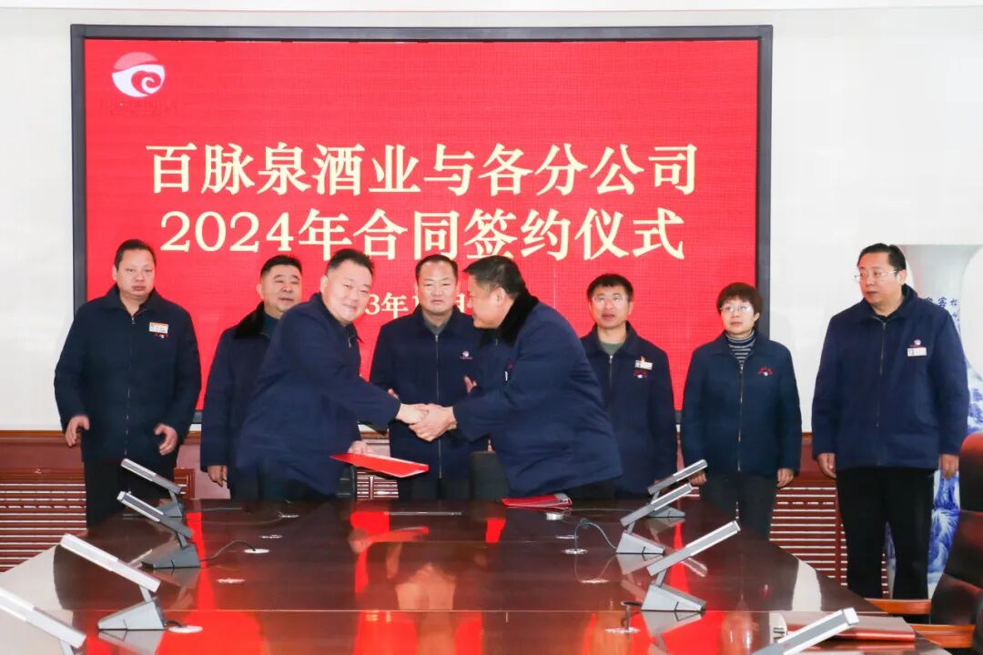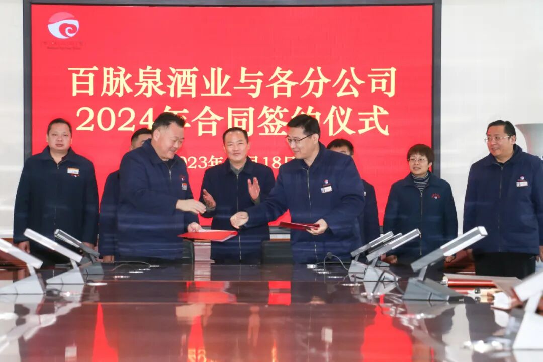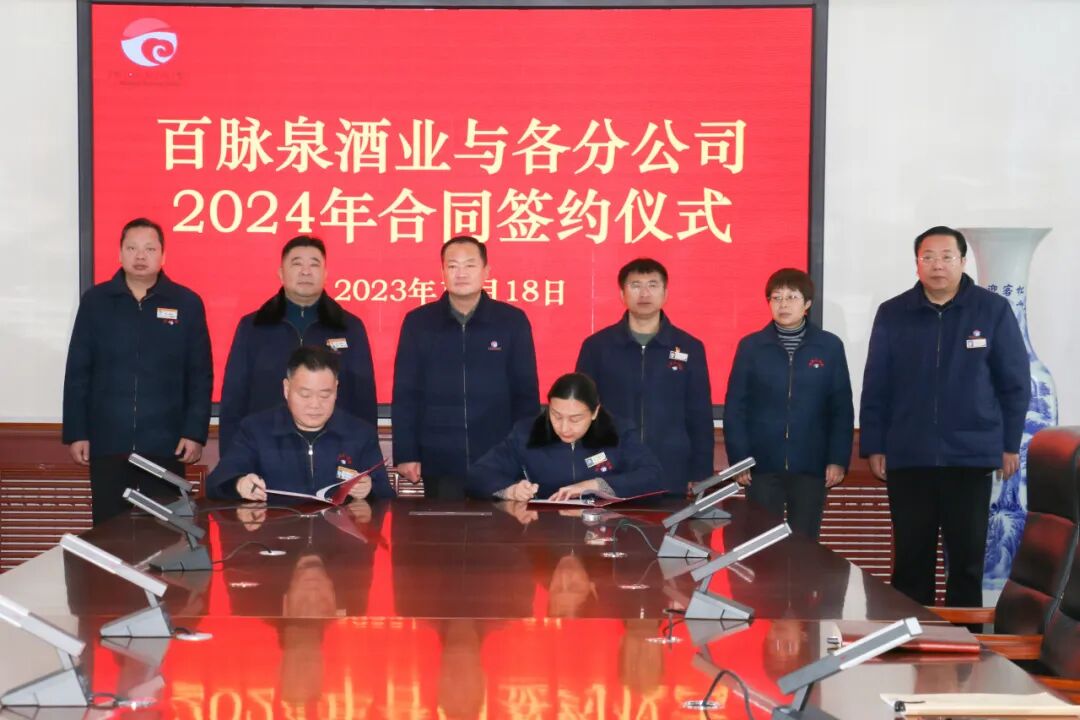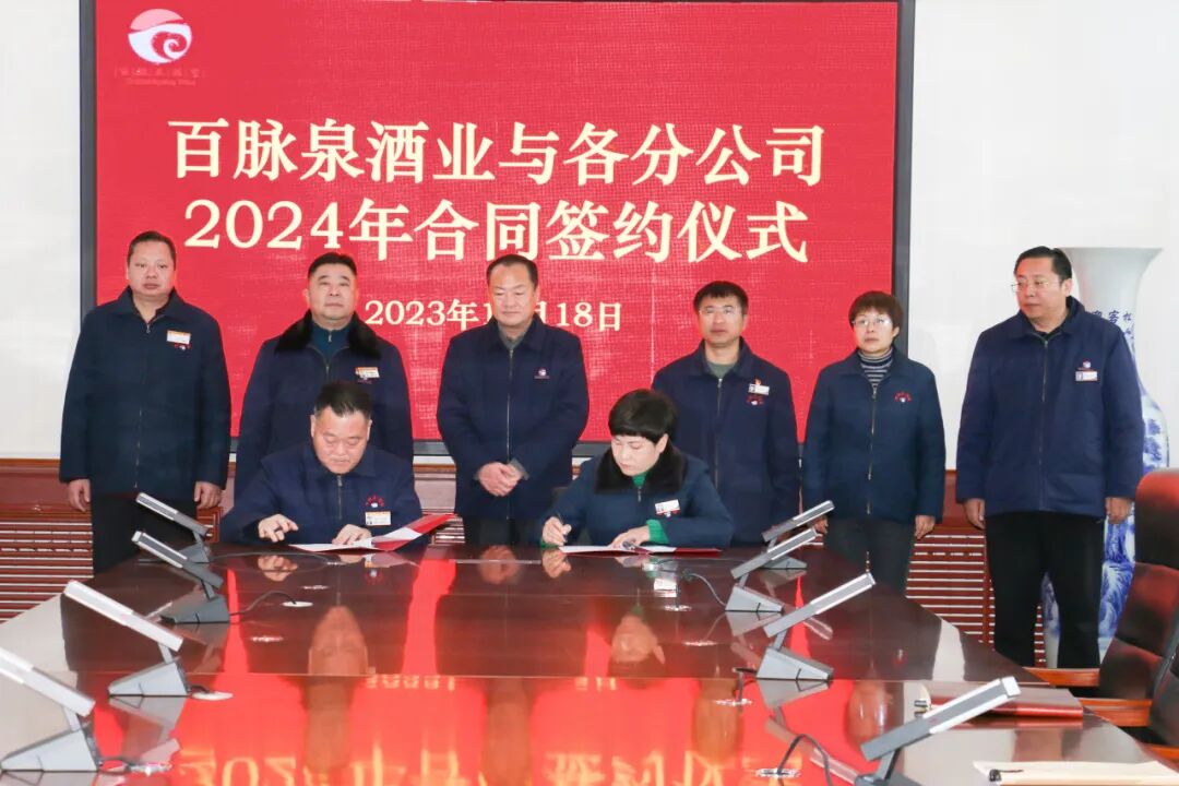 2023年12月18日,百脉泉酒业与济南清照生物科技有限公司、山东省泉城壹号旅行社有限公司、山东百脉泉传媒有限公司、山东百脉泉物流有限公司,四个分公司2024年合同签约仪式在公司隆重举行。