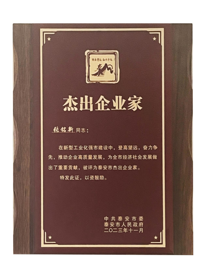 热烈祝贺泰山酒业集团董事长张铭新荣膺“泰安市杰出企业家”称号!