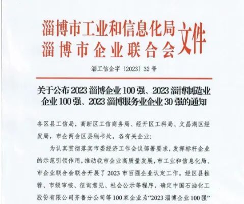 为认真贯彻落实市委经济工作会议部署要求,发挥标杆企业的示范引领作用,11月8日,淄博市工业和信息化局、淄博市企业联合会联合发布“2023淄博企业100强”“2023淄博制造业企业100强”“2023淄博服务业企业30强”名单。新星集团入围“2023淄博企业100强”“2023淄博服务业企业30强”!