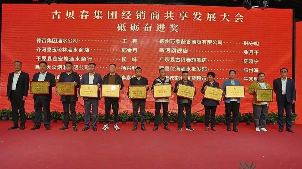 会议集中表彰了一批优秀经销商和优秀营销人员。优秀经销商奖项分别为:风雨同舟奖、厚积薄发奖和砥砺奋进奖,他们或与古贝春集团几十年如一日风雨同舟,或在各自市场超额完成任务,或在本市场销量取得100%增长,为古贝春的市场营销做出了卓越贡献。古贝春集团有限公司党委书记、董事长徐秀菊,公司党委副书记、总经理张洪昌,公司副总经理赵殿臣、孙步东分别为他们颁奖。优秀营销人员奖项分别为:奋发有为奖、勇于开拓奖和恪尽职守奖,他们或工作态度认真负责,任劳任怨且能出色完成任务,或在空白市场和空白渠道招商、现有渠道拓展、宴席市场拓展等方面工作表现突出,或对部门工作安排协调或对本市场整体运作有着清晰的规划思路及严格的执行力,并取得较好的成果。古贝春集团有限公司党委书记、董事长徐秀菊,副总经理张恒录、杜新勇,公司党委副书记韩东昌、顾金栋分别为他们颁奖。获奖经销商和营销人员代表分别发言,表达了继续坚定合作的信心和努力做好营销服务的决心。