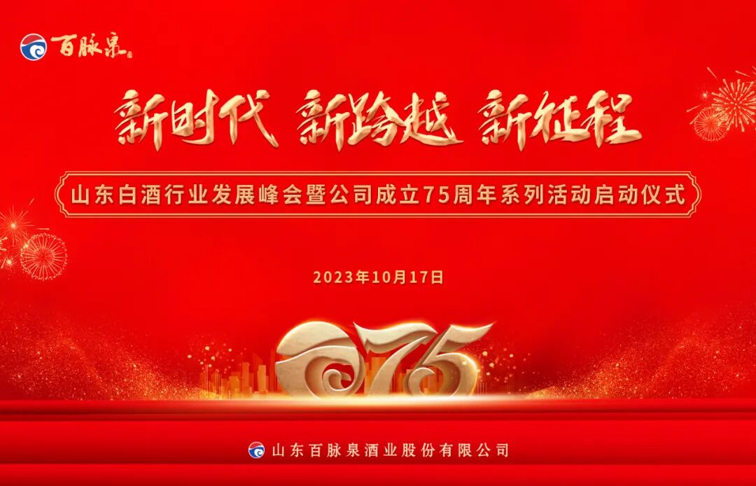 75载砥砺奋进,踔厉奋发笃行致远。10月17日,以“新时代、新跨越、新征程”为主题的山东白酒行业发展峰会暨公司成立75周年系列活动启动仪式在百脉泉酒业隆重举行。
