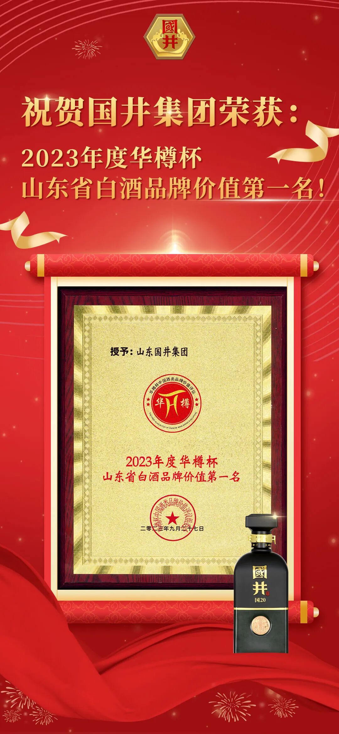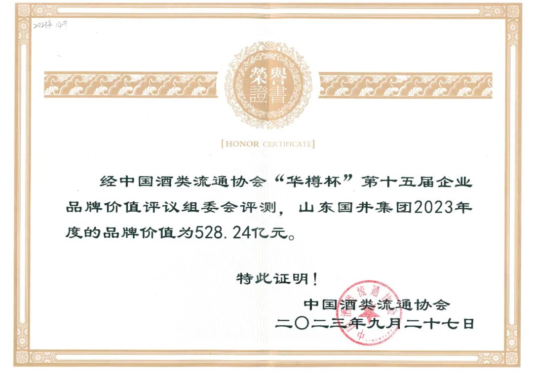 中国酒类流通协会评测国井集团2023年度品牌价值为528.24亿元,位列山东品牌第二位。
