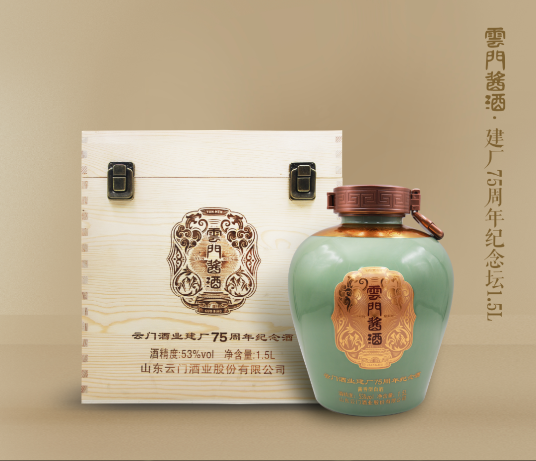 七十五年前,百废待兴的青州热土上,云门应势而生。此后,伴随着中华民族伟大复兴的波澜征程,云门人自强不息、勇毅前行,书写了云门奋斗七十五载华美篇章。为致敬75年的辉煌征程,感恩广大消费者的一路相伴,云门酒业特推出三款75周年庆典纪念产品。分别是云门酱酒国标金坛15L、云门酱酒75周年纪念坛1.5L、云门陈酿75周年礼盒,三款产品,款款精美,全部限量编码,极具收藏价值。